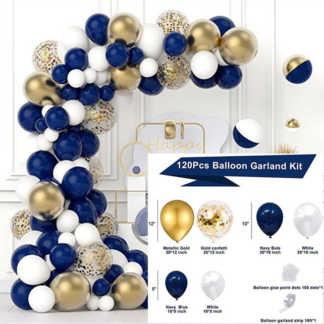 Dark Blue White Theme Balloon Garland Arch Kit